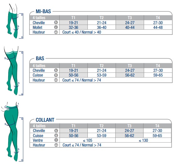 | Classe | Compression en mmHg |